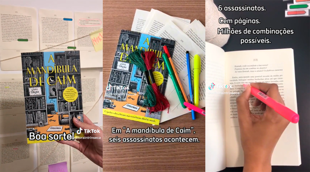 Os booktokers, nome dado aos criadores de conteúdo relacionados à literatura na rede social de vídeos curtos, dispuseram de marcadores de texto, blocos adesivos e do uso das páginas destacáveis para criar painéis dignos de filmes policiais.