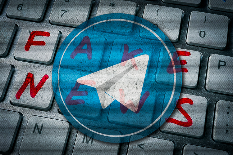 Telegram sobreposto sobre teclado escrito “Fake News”. (Reprodução pt.or.br)