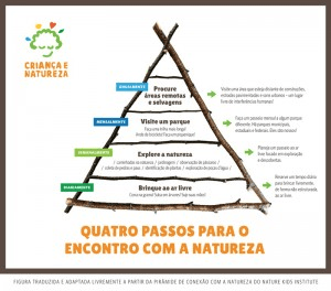Para o manual de orientações do Grupo de Trabalho em Saúde e Natureza, realizado pela Sociedade Brasileira de Pediatria em parceria com o Criança e Natureza “é importante assegurar que essas crianças e adolescentes tenham tempo e espaço para movimentar-se, gastar energia e participar de brincadeiras que despertem seu interesse e concentração”, uma maneira de pôr isso em prática, é utilizando o plano de “dieta de natureza”, baseado na pirâmide de quatro passos para encontrar com a natureza.