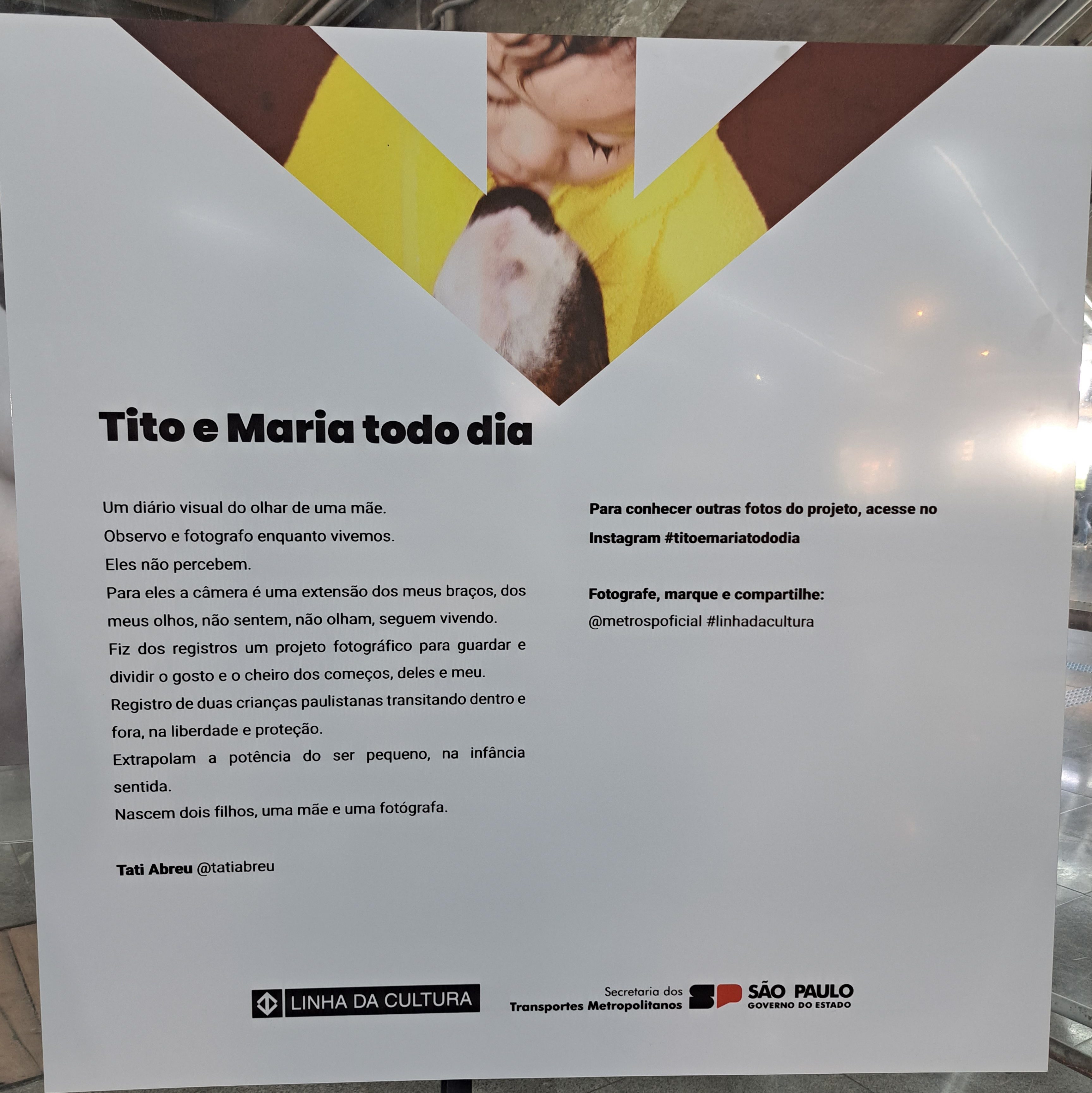 O trabalho nasceu como um recomeço de carreira para Tati. “Comecei a estudar fotografia aos 28 anos, não queria que ela fosse somente um hobby, eu precisava encarar como uma nova profissão”, e o registro dos filhos foi a engrenagem que faltava para a consolidação como fotógrafa, a levando à aparições em revista, museu e, neste momento, em uma exposição nos espaços de uma das mais complexas redes metroviárias do Brasil.