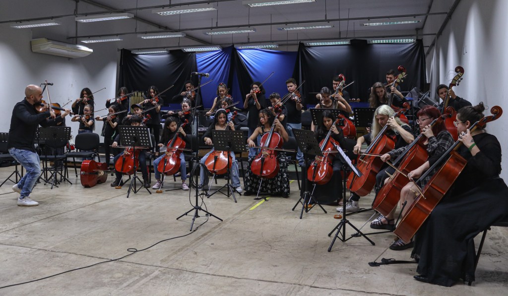 Alunos e profissionais do Guri no dia da audição de final de semestre