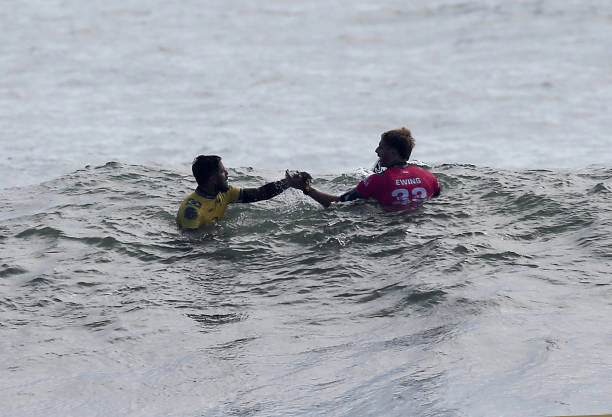 Ethan até conseguiu duas notas, mas o brasileiro ainda trocou sua menor nota por um 6.77, que fez com que segurasse o crescimento de Ewing na bateria e se tornasse mais uma vez o melhor surfista do mundo.