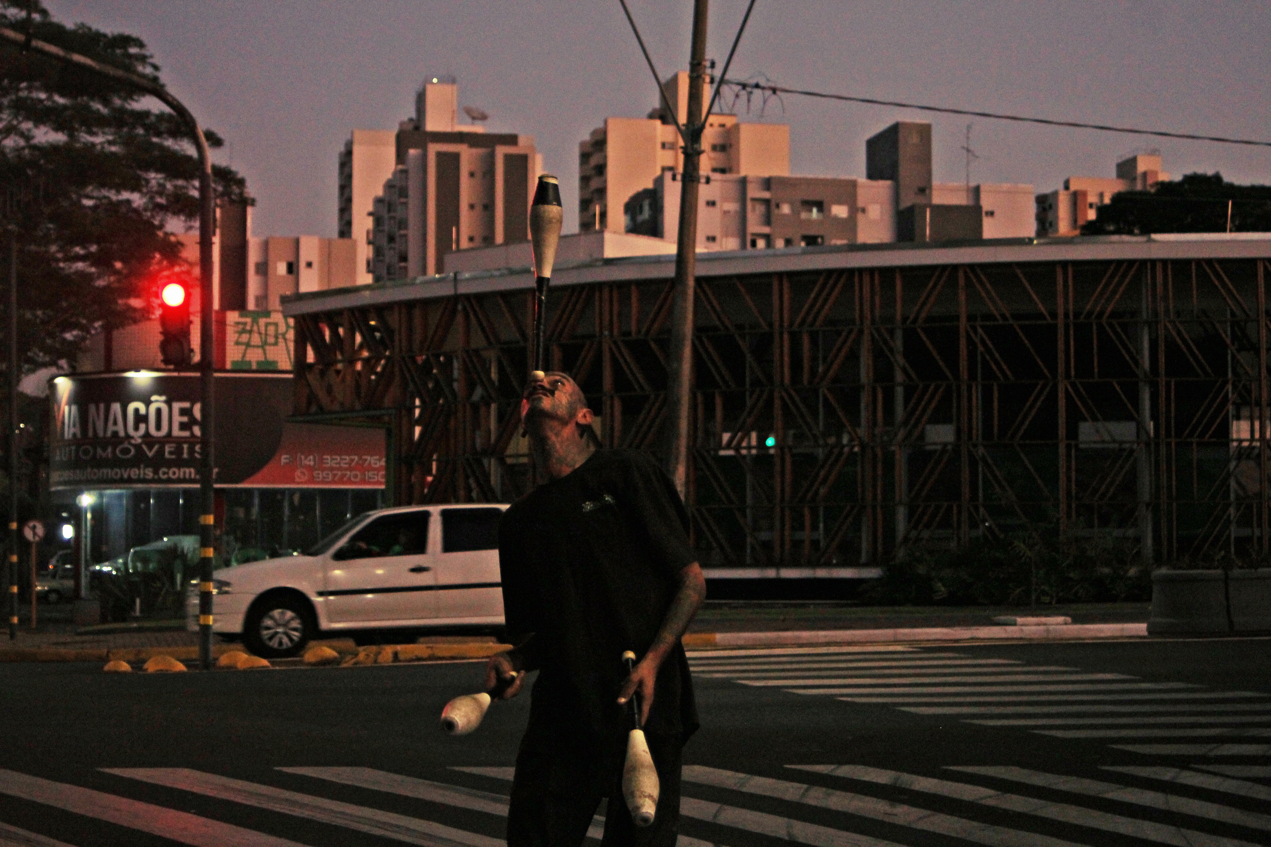 Fim de tarde, retornando para a casa, no trânsito caótico de um horário de pico. Cansado e com pressa, o sinal se fecha, e surge então alguém na faixa de pedestre, na frente do sinal vermelho.Com sorriso no rosto, começa a fazer malabarismo ali na frente. Entre bolas, clavas, facões e outros objetos, o intuito é o mesmo: levar alegria ao público e garantir um ganha pão. São artistas de rua. Faça chuva, frio ou calor, é possível encontrá-los se apresentando em frente aos carros em semáforos de ruas centrais de Bauru.