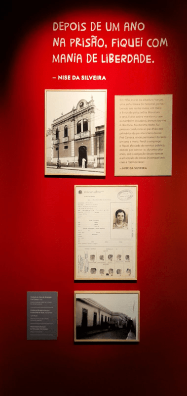 Além dessas obras, a exposição também traz fotos do arquivo pessoal de Nise, que contam sua história e influência na política, o ingresso na Faculdade de Medicina da Bahia e a influência de Carl Gustav Jung, psiquiatra e psicoterapeuta suíço, fundador da psicologia analítica.