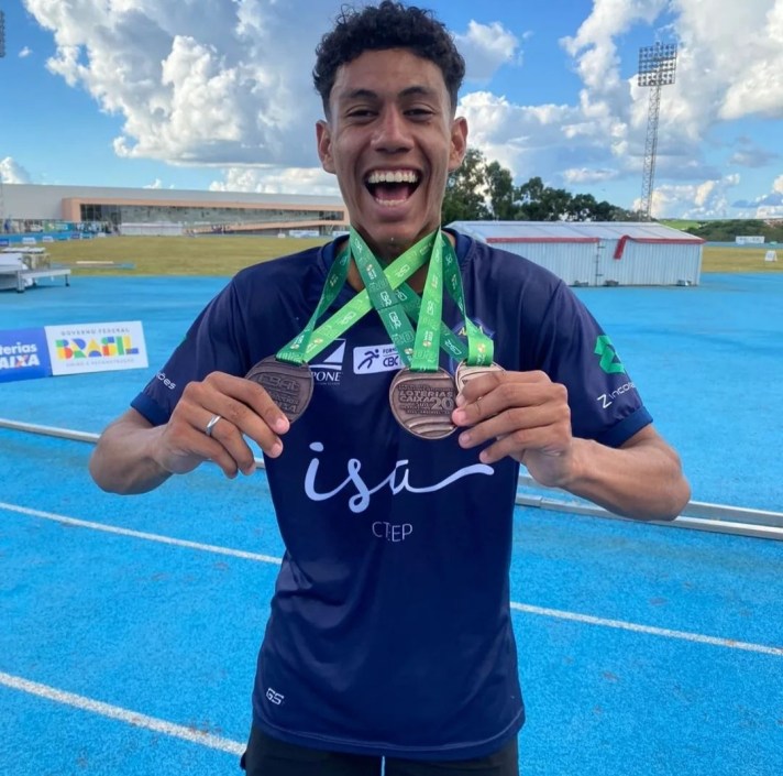A primeira é o Brasileiro Sub-16 de 2021 em Cascavel (PR). Em meio a um temporal, Vinícius se sagrou campeão e ficou com a medalha de ouro nos 300m com barreiras com uma marca de 38seg17. Não bastasse o tempo fechado, qualquer resultado diferente de medalha poderia colocar o atletismo em risco para ele. “Antes de ir para lá, eu tinha colocado na minha cabeça que se eu não fosse medalhista, não fosse bolsista nesse campeonato – que daria uma bolsa em dinheiro – eu teria que parar com o atletismo por conta de muita cobrança em casa. A mãe pedindo para ajudar, tinha tudo para dar errado, mas chegou na hora e deu tudo certo”, explicou o atleta.