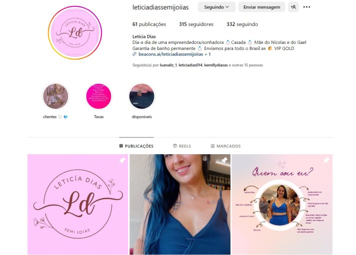 Perfil na rede social é um dos meios de exposição dos produtos de Leticia