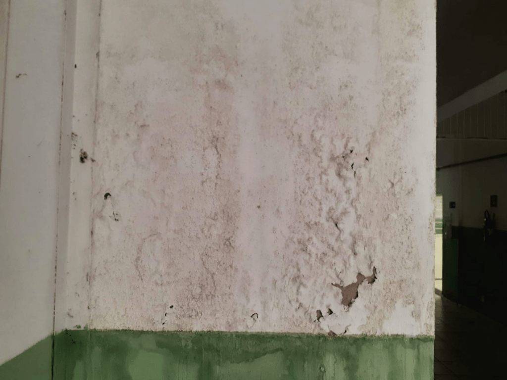 Infiltração e mofo na parede do corredor escolar na ETEC de São José dos Campos (Foto: Alice Burégio Portugal)