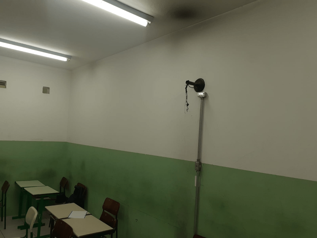 Sala de aula com ventilador quebrado na ETEC de São José dos Campos (Foto: Alice Burégio Portugal)