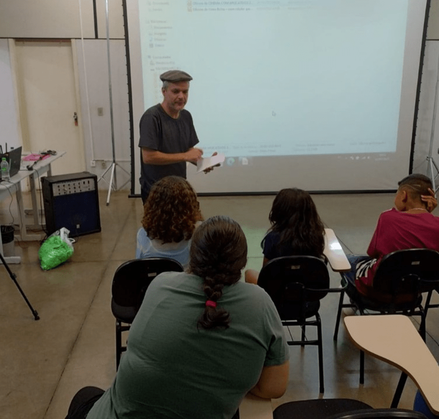 Oficina “Fazendo cinema com aplicativos” (Fonte: Biblioteca Municipal de Birigui)