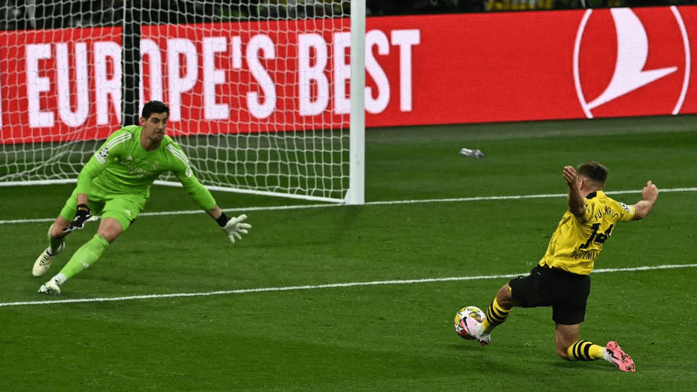 Ela destaca um jogador em específico no jogo: Courtois. “Se não fosse por ele, o Dortmund provavelmente teria saído na frente”.