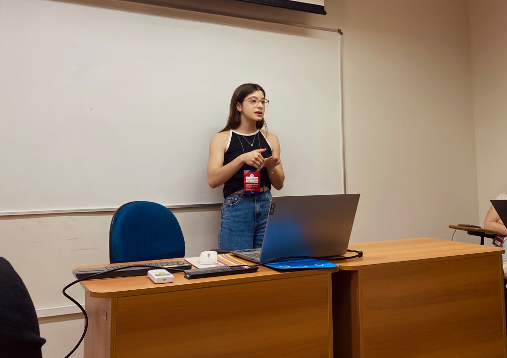 A estudante de jornalismo Luisa Machado Tabchoury durante sua apresentação