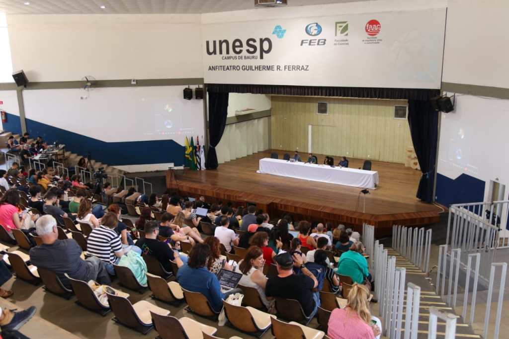 Anfiteatro Guilhermão lotado para a conferência sobre IA e sua regulamentação