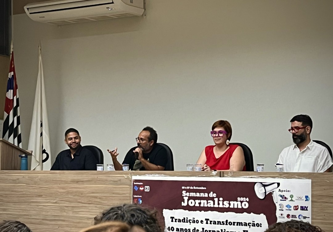 Durante a primeira mesa da Semana de Jornalismo da Unesp, egressos do curso de jornalismo compartilharam suas experiências profissionais, falaram sobre a formação do jornalista e sobre suas carreiras