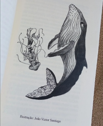 “E sobre personagens que eu mais me identifico, tem um conto no livro chamado ‘A baleia e a água viva’, acredito que é o favorito das pessoas. Muitos quando leem gostam muito desse conto e se identificam com ele. É uma história de dois seres marinhos, que viram amigos no fundo do mar, porém a água viva acaba ferindo a baleia constantemente, através dos seus toques que causam queimaduras, isso deixa ela cada vez mais cansada, machucada e ferida. E no final do conto, elas têm que dar esse afastamento e sumir da vida uma da outra para que elas conseguiam viver em paz, mesmo sendo muito doloroso, porque elas gostavam muito uma da outra. Então, é uma história que eu me identifico muito”, citou Alex.