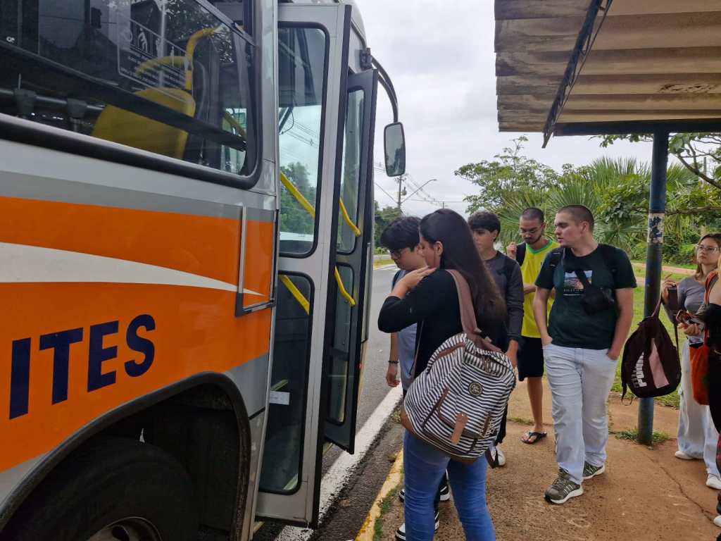 Estudantes em frente à Unesp entram em ônibus da linha Falcão/ITE Foto: Isabela Marquesi
