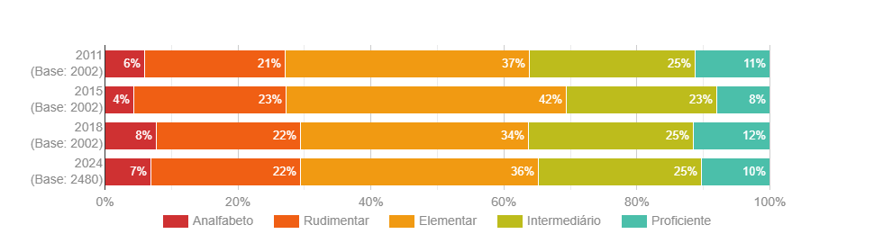 Alfabetização por nível de escolaridade – Fonte: Inaf 2024