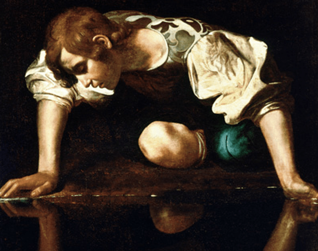 Narciso, personagem da mitologia grega que definhou até a morte admirando o próprio reflexo Fonte: Narciso, de Caravaggio