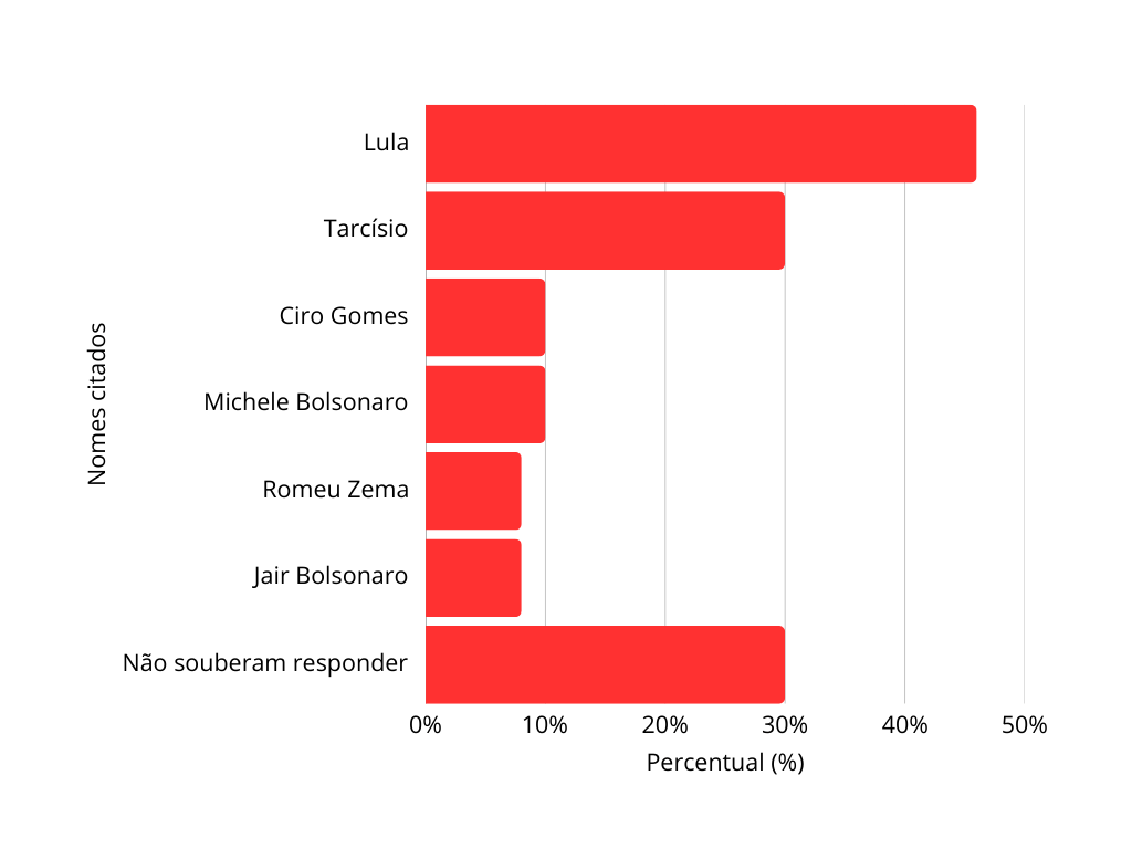 Em levantamento realizado por alunos da Universidade Estadual Paulista (Unesp), município de Bauru, 50 moradores da região foram entrevistados acerca das eleições para presidência em 2026. Ao serem perguntados sobre “Quais devem ser os próximos candidatos nas eleições presidenciais de 2026?” os nomes mais citados foram: