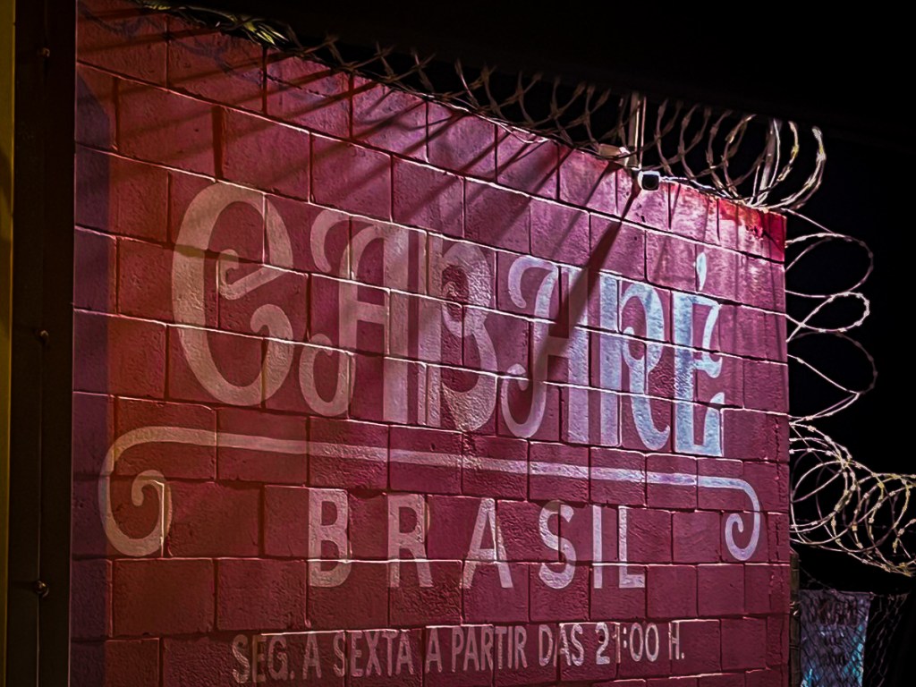 Uma mulher de saia rodada vermelha passa ao lado. Ela desfila pela garagem, arrastando os pés no salto até o portão, onde está sentado sob o frio o dono do Cabaré Brasil.