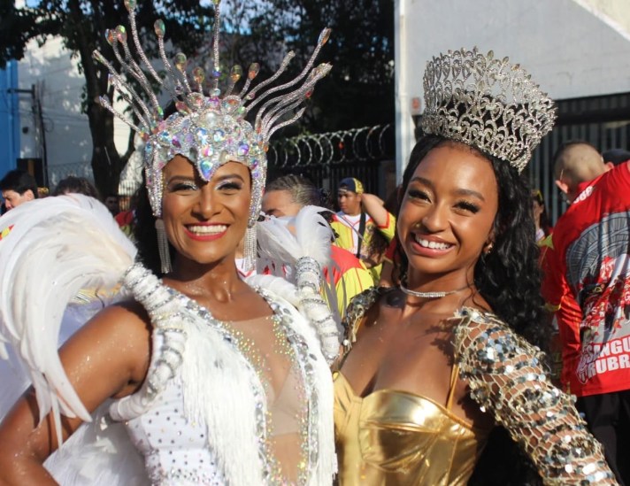 Da esquerda pra direita: Sandra Tonelli, rainha de bateria da Mocidade, e Giovanna Batalha, rainha da escola. Foto: Redes sociais/ Reprodução